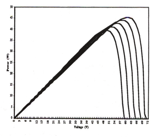 Figure 2. Solar Array Power vs. Voltage for Various Temperatures