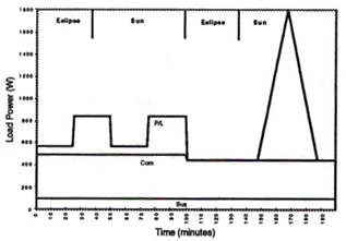 The EPS load is defined by orbital averaged sun and eclipsed loads and by a time-dependent load profile for each desired position in orbit. This component is illustrated in Figure 1.